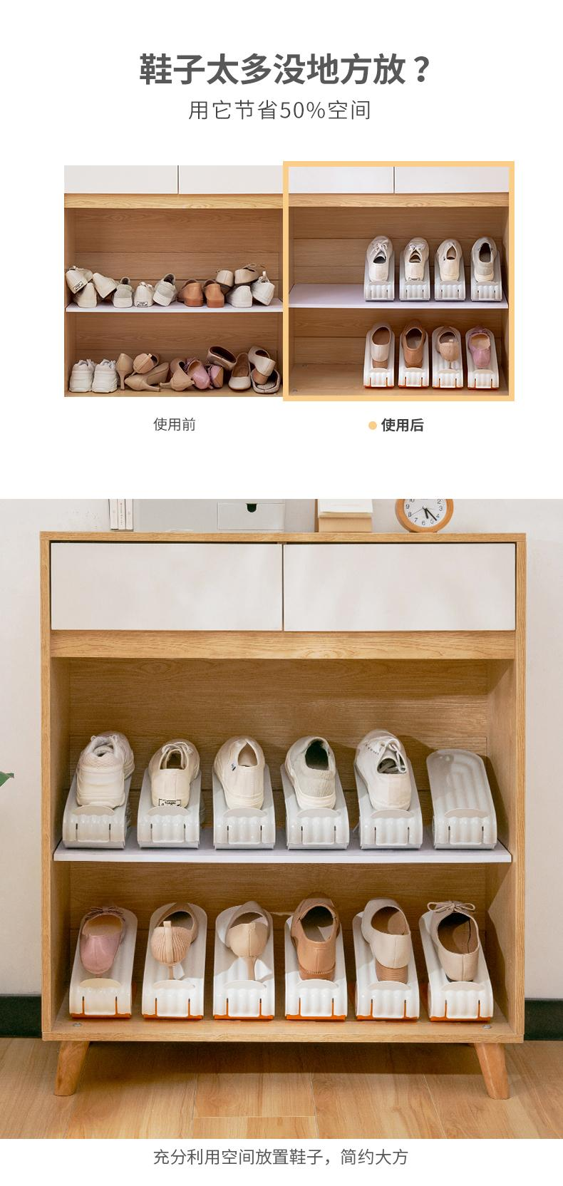 半小時前鞋櫃老是不夠放??試試這個【雙層鞋托架】 鞋櫃裡不僅整齊好看,還節省了很多空間! - 【雙層鞋托】(加厚可調節)NT$998(十個)
