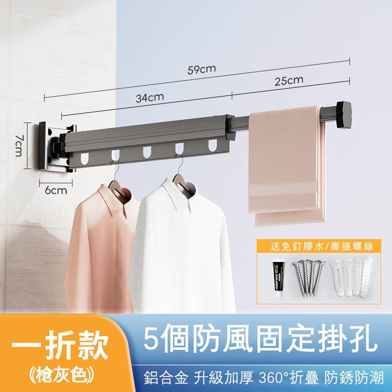 7分鐘前【不佔空間 晾衣神器】吸盤壁掛式鋁合金折疊晾衣架「免打孔 即吸即用」 - M【中長款 - 三段兩折】鋁合金壁掛式伸縮晾衣架 = NT$1299